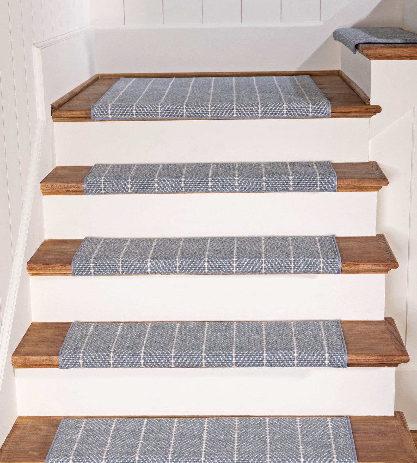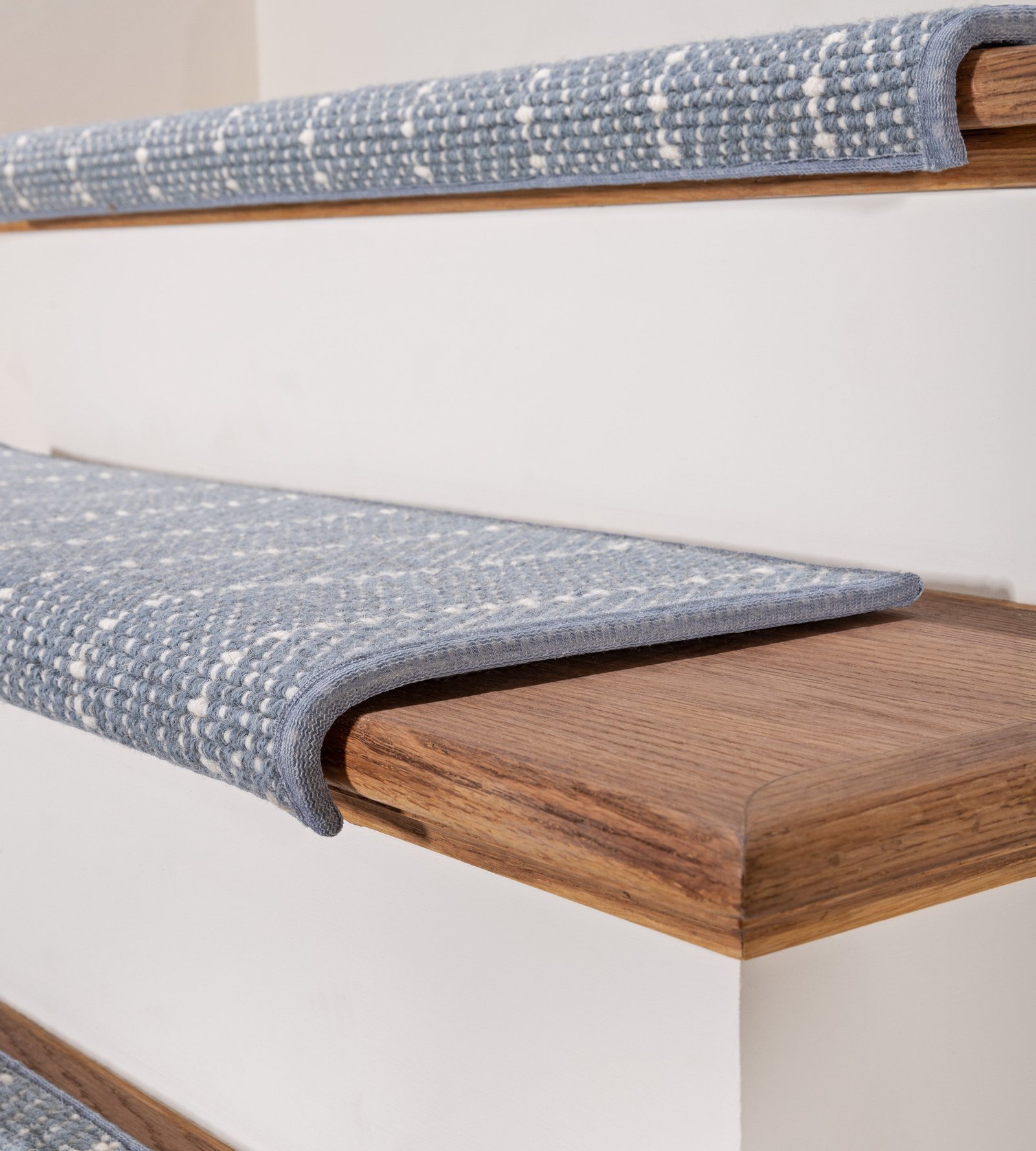 The Canterbury carpet, crafted from 100% pure wool, is a masterpiece of craftsmanship and design. Its hand-loomed loop pile creates a luxurious, textured surface that enhances its refined and handsome appearance. The two-tone, diagonal and vertical striped pattern adds subtle movement, while the loop pile embellishment offers added depth and dimension. The fresh and soothing palette makes Canterbury the perfect choice for spaces that demand elegance and comfort, bringing a sophisticated, calming atmosphere to any staircase or hallway.