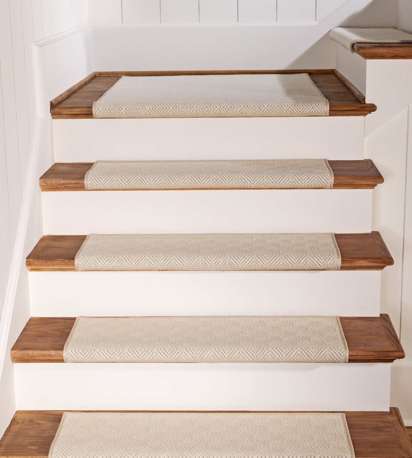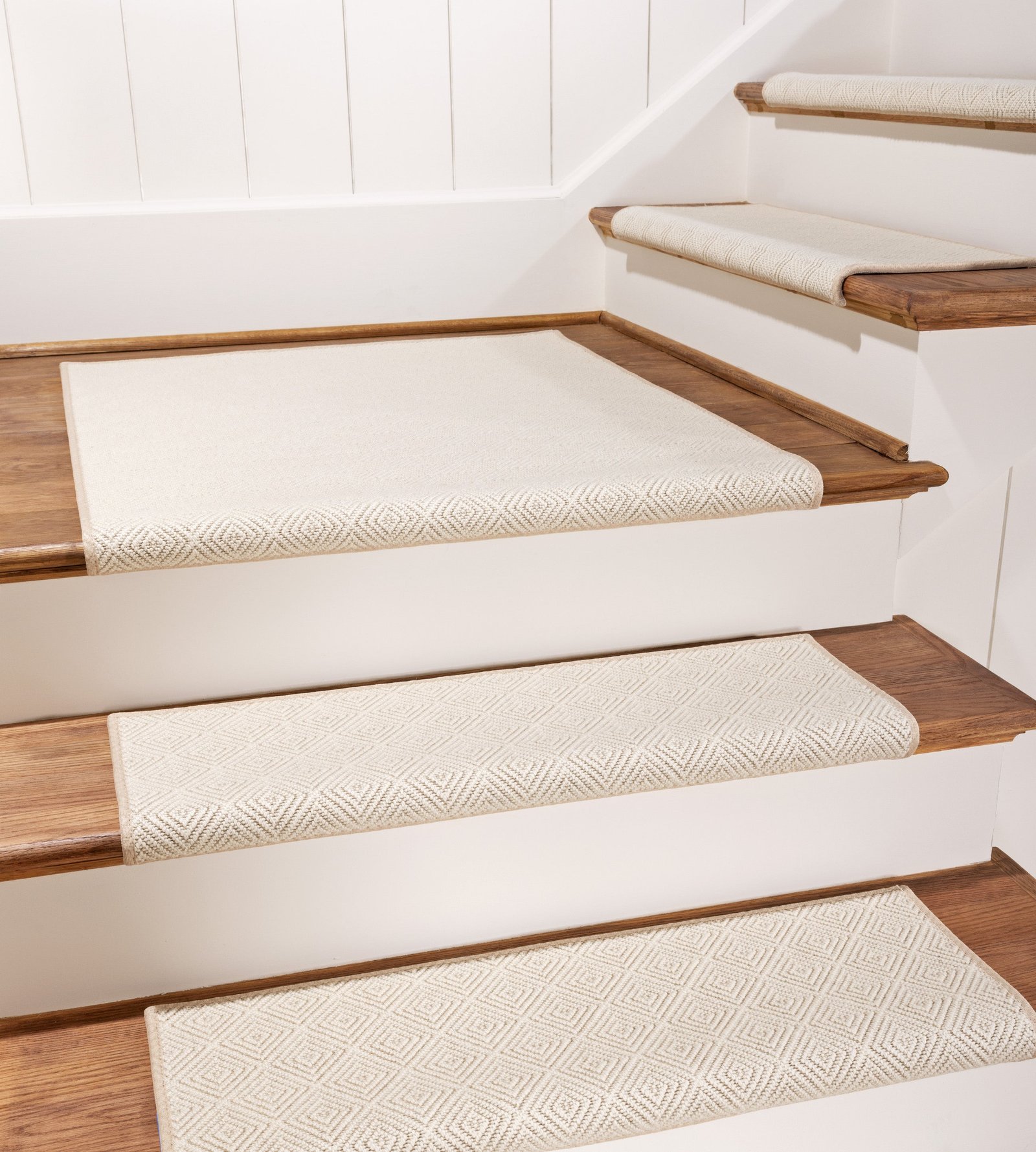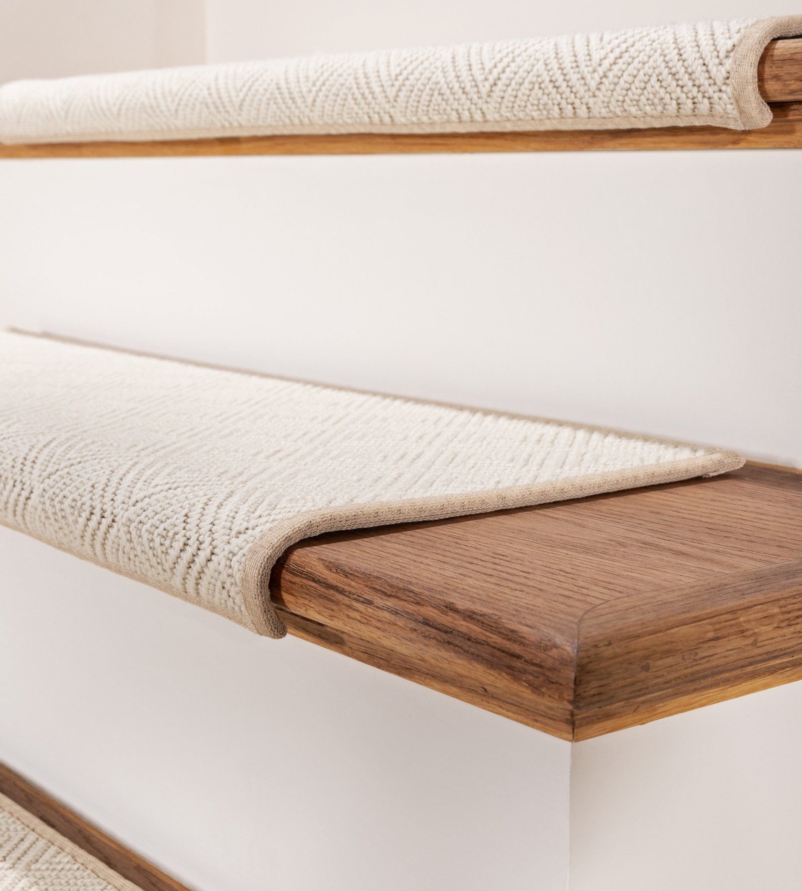 The Lyndon carpet, made from 100% wool, offers a refined, high-end look with its geometric flatweave and loop pile construction. The textured design brings depth and sophistication to any staircase or hallway, while the natural wool fibers provide warmth and durability. Perfect for adding a touch of elegance to your home, Lyndon combines luxury and craftsmanship, making it an ideal choice for those seeking a stylish and timeless carpet.